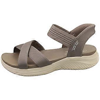 These Skechers Slip-Ins Ultra Flex 3.0 Vegan sandals in Dark Taupe are the epitome of comfort and style for women on the go. The textile upper blends seamlessly with the soft textile lining, creating a breathable and flexible feel. A synthetic insole provides cushioning with every step, while the durable rubber sole offers reliable traction. Designed with a slip-on style for easy wear, these sandals are perfect for everyday walks or casual outings.