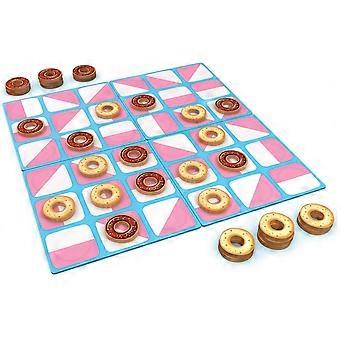 DONUTS - Taste the new game by Bruno Cathala, one of the most prolific and awarded designers. Donut versus Donut The competition between vanilla and chocolate donut aficionados is fierce Behind the sweetness of these delicious donuts hides a clever, streamlined 2-player game. Randomize the 4-panel game boards, distribute 15 donuts to both players, then start playing. Each move affects the next player´s. Your goal is to align 5 donuts without letting your opponent put one of their donuts in your row The tasty and tactical clash for 2 players. Ages 8+, 2 Players, 10-15 min.