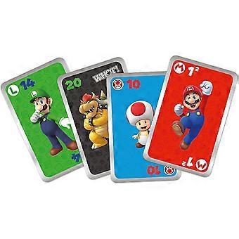 Invite your friends and family back to the Mushroom Kingdom for a brand new challenge with Super Mario Mega WHOT This deluxe edition of the original matching game features two decks of 53 high-quality playing cards with unique foil detailing and a custom game board. Take turns matching shapes, numbers, and Nintendo characters including Mario, Luigi, Yoshi, Peach, and Toad, and be the first to get rid of all your cards. Use the special Bowser and Bowser Jr. WHOT cards, which can represent any number or shape you choose, to reverse the flow of gameplay and disrupt your opponents schemes This special edition of the classic card game is the perfect way to take a break from stomping Goombas, so get ready to show off your memory, strategy, and quick thinking to win. This Official Nintendo Licensed Product is perfect as a gift or treat, and fast-paced fun for the entire family.