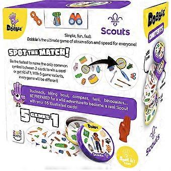 A card game of speed, observation and reflexes. Race to find the one matching image between one card and another. Images may be different sizes and placed on any part of the card, making them difficult to spot. Every card is different and has only one picture in common with every other card in the deck. Fast paced, fun card matching game. Spot the match Rucksack, hiking boot, compass, tent, binoculares BE PREPARED for a wild adventure to become a real Scout with your 55 illustrated cards