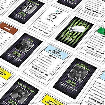 "Beetlejuice Beetlejuice Beetle" Before you call his name three times, work your way through the strange and unusual afterlife of MONOPOLY: Beetlejuice Buy, sell and trade your favourite dark comedy characters such as Lydia, Delia and Charles Deetz, Adam and Barbara Maitland, and the irreverent bio-exorcist himself, to haggle the living daylights out of your competition. Pick up Haunting and Occurrence cards for unexpected prizes and penalties, but watch out for the Handbook for the Recently Deceased and Scale Model Town fees Tour the board, from the Janitor to the Magician´s Assistant, Sarah Dean and the Snake, and build up haunted houses and paranormal museums to charge your opponents more rent. Will you get stuck in the waiting room forever, or banish Beetlejuice for a hefty cash reward? Choose from one of six custom metallic tokens, roll the dice and find out if you can do better than "the ghost with the most". It´s showtime