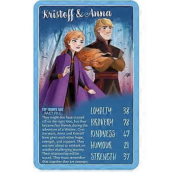 Entertaining, educational card game loved for bringing your favourite Frozen characters to life Play Top Trumps anytime, anywhere, with as many people as you like Find out how loyal Anna is, how brave Olaf can be, and the limits of Elsa´s strength Easy-to-carry plastic case means there are no limits on gameplay.