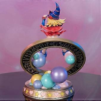 Dark Magician Girl is a six-star level spellcaster and her spells are not to be taken lightly. She has trained with the bestDark Magician. Dark Magician Girl helped Yugi defeat many foes from Battle City to the Duel Festival. For this statue, Dark Magician Girl is high up in the air and with her wand in front, ready to go into battle Behind her is the Magicians Seal, and colorful magic orbs sprout from the base. The Pastel variation features Dark Magician Girl wearing a light blue dress accented by light pink details. For the exclusive edition, the Magicians seal lights up with 2 LED functions: Static and Animated. When animated, lights swirl around the ring of the Seal as if Dark Magician Girl is preparing to use her Dark Burning Attack