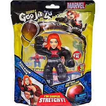 Marvel Superheroes and the Heroes of Goo Jit Zu have combined forces again to bring you the ultimate line-up of the stretchiest, gooiest and squishiest Superheroes ever all ready to defeat evil and save the day Black Widow has joined forces with the Heroes of Goo Jit Zu to become a Super Stretchy Hero This Goo Jit Zu Marvel Hero can stretch, twist and squish her unique gel filling and move in a way like she never has before With her extra, super stretchy filling you can squeeze her body and watch her gel filling bulge out Play with your Black Widow Hero figure in a new GOOEY way and help save the day - with NO mess Squeeze, squish and stretch her arms, legs and body Her amazing stretchy body can stretch up to 3 times its size and then return to its original shape and size Collect all 4.5-Inch Marvel Heroes including the Amazing Spider-Man, Incredible Hulk, Captain America-Sam Wilson, Captain Marvel, Black Widow and invincible Iron Man Each Marvel Hero has their own unique goo filling with a different texture and feel like you have never seen or felt before Collect them all