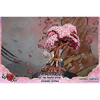 First 4 Figures is proud to present their latest PVC collectible, Chibiterasu PVC. Chibiterasu is the main protagonist of ?kamiden. The celestial wolf pup is also the son of the Celestial Brush Goddess of the Sun, Amaterasu And just like his mother, he wields a smaller Divine Retribution on his back. He is all white with ruby-red markings and a tail that´s shaped like a calligraphy brush. Determined and loyal, he saves the people of Nippon with the help of his partners and friends, whom he meets along the way His adorable persona is wonderfully captured in our statue with his ready-to-play pose The base is beautifully adorned with the Okami symbol and a Sakura tree with traditional Japanese rope detail.