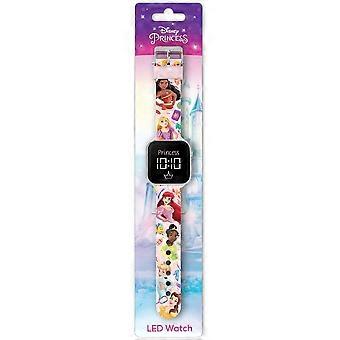 Disney Princess LED watch with Digital time design, silver plastic casing, red digital light up LED display and fun printed strap design with traditional buckle fastening. Packaged in official branded packaging and comes with one year guarantee.