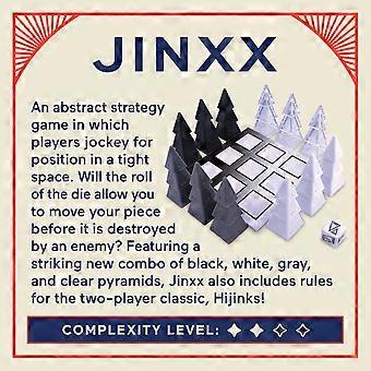 Description Jinxx is an abstract strategy game for 2-4 players featuring striking stacking pyramid-shaped pieces in three sizes and four colors--black, white, gray, and clear. In...