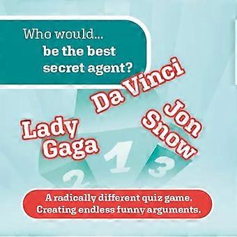 Rankster is a wildly different co-operative quiz game where you have to agree how you would rank famous people (and your friends). Simple but hilarious - 1- Turn over three character cards. 2- One player is the Judge who takes a question card, reads it to themselves, and secretly decides how they want to rank the characters on the basis of the question. They then read the question aloud to the other players. 3- The other players chat and have to all agree how they think the Judge has ranked the characters. Reveal the answer. If the players guessed the correct ranking everyone wins the round; if not everyone loses.