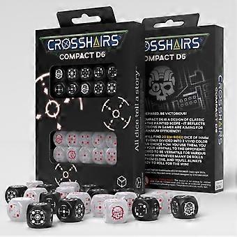 Get ready for action This set of 20 dice, sized 14mm, is evenly divided by color. Inspired by crosshairs, their elegant dot design blends black and pearl backgrounds with white and red paintings for a dynamic look. Their compact size makes them perfectly fit in your hand; with rounded edges these dice ensure smooth rolls and excel in various game types. Play and win anytime, anywhere