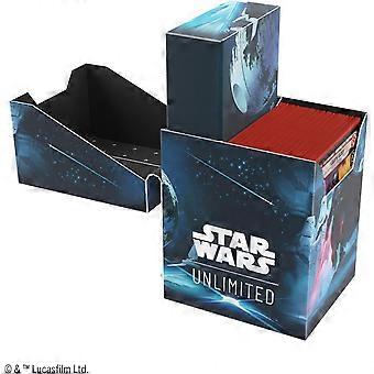 The all-in-one casual solution for Star Wars: Unlimited players. This full color printed and officially licensed deck box is packed with ingenious features. It protects a full double-sleeved deck of cards and includes an innovative token box This token box has a smart click-lock mechanism to keep all tokens safely stored even while pulling it out. Once opened, the lid of the box stays upright for convenient access during gameplay.