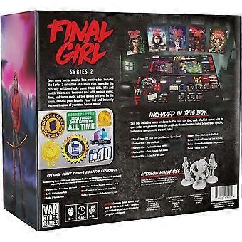 We´ve created a nice big box for each Series of Final Girl that will keep everything in one place. Each box includes additional interior boxes for organizational purposes. The Core Box and Feature Films fit in vertically with the beautiful spine art facing out. Next to those will be space for the Core Box, a "Cast and Crew" box (included with the Storage Box) that can be used to hold that Season´s Girl miniatures and the vignette film, and an additional "catch all" box (included with the Storage Box) for additional storage of things like the Lore and Scenario book, Gruesome Death Books, and other stretch goal or add-on items. The game mat box (included with the Storage Box) will feature a "VCR-like" design for aesthetics.