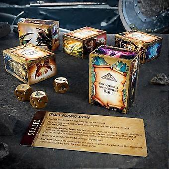 When the fate of the world is threatened, your enemies become allies. In this Talisman Alliances: Fate Beckons cooperative game, join forces with fellow players and set forth on an epic adventure to complete five daunting Trials In each Trial, players will need to place two Talisman on Places of Power, unseal the Portal of Power and defeat that Trials adversary. With a vast world of possible scenarios, this expansion to the Talisman strategy board game for teens and adults offers limitless games Includes: 30 Starting Game Cards, Doom Tracker, Doom Tracker Token, Rulebook, 24 Double-Sided Strength/Craft Tokens, 5 Boxes with 5 Figures, 4 Envelopes with 20 Game Cards. This tabletop adventure game for ages 12 is for 2-6 players. (Requires Talisman base game 5th Edition to play. Sold separately.)
