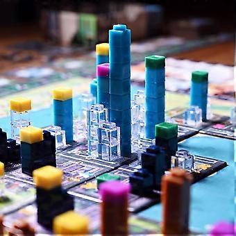 In Rolling Heights, you will be “rolling” meeples that represent your workforce. Meeples that land upright are energised workers who transport building materials to your various construction sites and carry out special actions, while meeples that lie on the ground are exhausted workers who need to rest. You can try to push your workers, but push too hard and your employees will revolt and go on strike Materials come in the form of plastic cubes that you stack to construct threedimensional structures on the board. Completed buildings bring you prestige and additional workers to help you construct even taller buildings, including skyscrapers. These landmarks will define the cityscape for decades—even centuries—to come. What great heights will you reach? Let’s get rolling