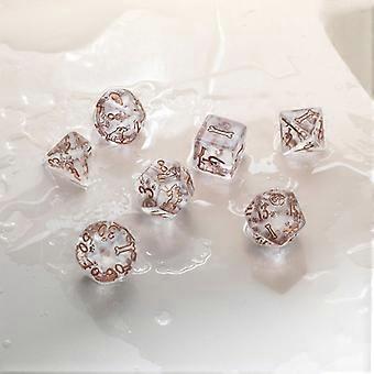 The DOGS Dice Set: Bubbles is not just a tribute to man´s best friend; it´s also a symbol of pups who love to swim and joyfully splash in the water. The copper engravings on a transparent background symbolize the bond between dogs and the unrestrained fun of enjoying the water. Each dice in the set showcases adorable dogs in different poses on the highest faces, bringing a playful and lively spirit to your game sessions. But it doesn´t stop there Alongside the digits, you´ll find images of tennis balls, chew bones, sticks, old shoes, and paw prints, making these dice the perfect companions for any dog lover. Experience the excitement of rolling these unique dice, celebrate the bond between humans and dogs, and get ready to soak wet when standing by a dog shaking water off Get your paws on the DOGS Dice Set: Bubbles and embark on unforgettable adventures with your favorite four-legged companions