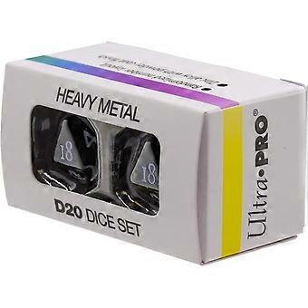 Chase that natural 20 with all the intensity of Ultra PRO´s Vivid Heavy Metal Dice Collection These 20-sided dice are made with zinc-alloy metal for a solid, weighted feel. Each set comes with two colorful dice with white color numbering, smooth edges and powder coated to last through long hours of D&D and RPG sessions.