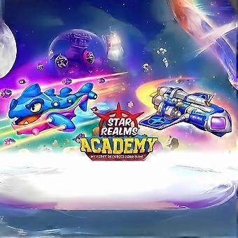 Star Realms Academy is a kid friendly (but still fun for grown-ups) version of the popular Star Realms deckbuilding game. Less math, no reading necessary, but still tons of fun Includes a large folding game board, 2 player boards, 60 game cards, 52 punchouts, and a rulebook. Fun and easy to learn gameplay, Star Realms Academy is a great way to get your kids involved in their first deckbuilding card game. With fun and creative artwork, it is the perfect game for your children to play.
