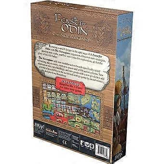 Discover and tame new lands, forge new items, and face new challenges when you return to the Viking way of life. Continue the epic saga of A Feast for Odin with this expansion The first large expansion for A Feast for Odin, The Norwegians includes four new islands (Isle of Man, Isle of Skye, Islay, Outer Hebrides) with Irish coastal viking-settlements on the backside (Waterford, Wexford, Cork, Limerick), where people from Norway came to stay through the winter (longphort), to trade at, and to settle nearby This offers new strategies and new puzzle-tiles like horse (6VP, 2x5 spaces)/pregnant horse/leather(green)/vadmal(blue) and pigs (1 VP, breed every round; 2x3 - 1 = 5 spaces)/herbal (orange)/ antler (green)/tools (blue) The game has a third box for the tiles and offers the four old islands too (renewed little different VPs and new graphic-aspects of mini-expansion islands Lofoten/Orkneys/Tierra del Fuego) Expansion - Requires base game to play.