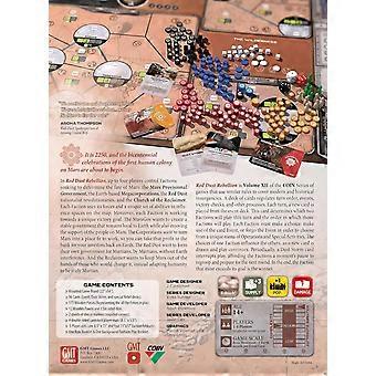 It is 2250 and the bicentennial celebrations of the first human colony on Mars are about to begin. 200 years of human achievement, but also 200 years of hardship. Mars is an unforgiving world, a barren wasteland on the surface, therefore the people live in vast underground cities known as labyrinths.Over the years, the people of Mars have formed their own culture and identity and want more say in their own rule. To many, Earth is a remote world with too much control over Martian affairs. Furthermore, Earths corporations have too much power over life and death. Some long for a green Mars, covered in oceans and life. While others recoil at the idea that humanity will destroy the climate of another planet.Red Dust Rebellion is volume XII of GMT´s acclaimed COIN Series, and tells the story of the Martian revolts of the 2250s and the rise of Martian nationalism.