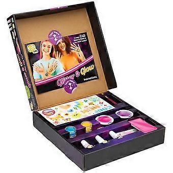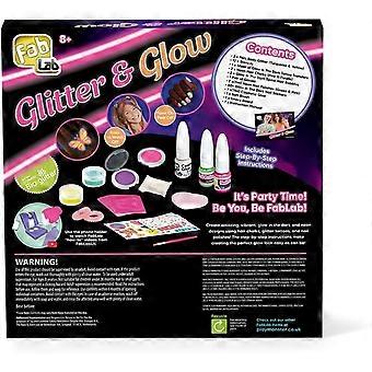 It´s party time with the FabLab Glitter & Glow Kit Create your own unique style with vibrant glow-in-the-dark and neon designs using hair chalk, glitter tattoos and nail polishes. Paint your nails with hot neon colors, then add super cute nail stickers that glow in the dark Create amazing, sparkly, and eco-friendly glittery tattoos that shine brightly. Apply neon-coloured hairlights, then turn off the lights and let the hair bobbles and hair gel shine. This all-in-one kit is perfect for parties and events, providing everything you need to achieve the perfect glow look.