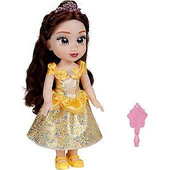 CELEBRATE DISNEY 100 YEARS OF WONDER: Beautiful new outfit features a platinum holofoil print skirt featuring roses and hand held mirrors that glimmer in the light. GREAT GIFT IDEA: makes a great birthday gift, holiday gift, gift for Disney Princess fans. FEATURES: Shimmery glitter eyes, removable princess dress, princess tiara, easy on-off shoes and brush to style Belles long-flowing hair with stylish bun. POSE & PLAY: Belle doll stands approximately 14 tall and is articulated at the neck, shoulders, and hips. INCLUDES: 1 Doll, 1 Doll Outfit, 1 Doll Tiara, 1 Pair of Doll Shoes, and 1 Doll Brush. ALSO LOOK FOR: the Disney Princess Belle dress to match with your Belle doll, sold separately.