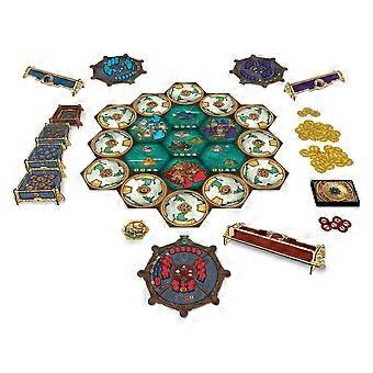 As the leader of a powerful civilization, you must explore and settle the islands available to you, with the goal of gaining the most gold possible. Players choose one of four actions on their turn: explore, settle, produce, or engage. The game ends as soon as any one of the resource pools is exhausted. The civilization with the most Gold in their reserves is declared the winner