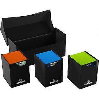 The Triple Deck Holder 300+ XL is a compact, durable, and affordable storage solution. It is perfect to store three complete decks or up to 300 double-sleeved cards in Thick Inner Sleeves. The three inner deck holders are removable and can hold up to 100 double-sleeved cards each. The innovative Cobra Neck technology allows for wide opening of the lid and easy access to deck holders and cards. The Triple Deck Holder 300+ XL also fits oversized cards.