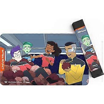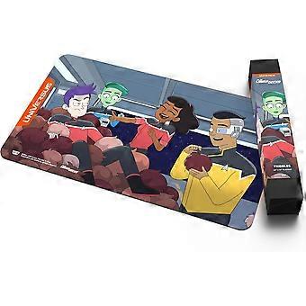 STAR TREK: LOWER DECKS PLAYMAT - TRIBBLES - Dive Into the Quirky Adventures of Star Trek: Lower Decks Keep your cards safe and show them off in style with this brand new playmat featuring Mariner, Boimler, Tendi, Rutherford, and Tribbles from STAR TREK: Lower Decks One of 5 different playmats created for the release of STAR TREK: Lower Decks Challenger Series The mat is made from high quality neoprene and features a rubber backing to help keep the mat in place while you play. Laid out the playmat measures 24 inches x 14 inches. The stunning artwork will help take your game to the next level and give a more immersive experience. Accessory to be used with The UniVersus Star Trek: Lower Decks card game. Includes: (1) 24 x 14 inch neoprene playmat.