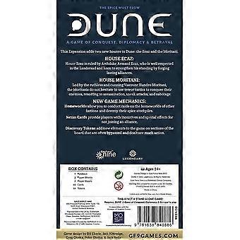 Adds both House Ecaz and House Moritani to the classid Dune Board game. These are two NEW factions, who have their own special rules and abilities that you can use as two of the six player factions in a game