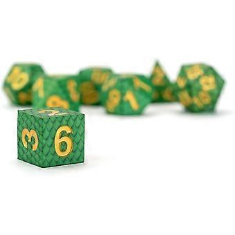 Introducing a new line of dice perfect for any tabletop adventurer The new silicone Dragon Scale die features new technology to look and feel like Dragon ScalesSharp Edge Silicone Rubber dice are fun and unique to roll. Sharp edges provide a precise roll that is complemented with the slight bounce of silicone. Each full-sized, 16mm set comes with 7 dice (d4, d6, d8, d10, d10% (00-90), d12, and d20).