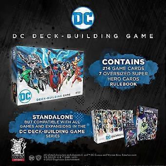 Batman Superman Wonder Woman Aquaman The Flash Green Lantern Cyborg The Justice League of America is ready for action are you? Fight the never-ending battle for truth, justice, and peace in the DC Comics Deck-Building GameTo start the game, each player chooses one of the seven over-sized hero cards, each of which has a special power, and starts with a deck of ten cards. Each turn, a player starts with a hand of five cards and can acquire or conquer the five types of cards in the game: heroes, villains and super-villains, equipment, super powers, and locations. To defeat villains, you´ll need to have power but when a super-villain is defeated, a new one comes into play, attacking all the heroes while doing so. Make sure you´ve acquired defenses like superspeed or bulletproof powers, or The Batsuit equipment to protect yourself from harm.Craft your hero deck into a well-oiled machine to take on the most vile villains in the DC Universe in your quest for victory (points)