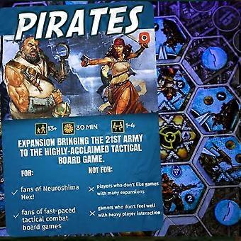 Pirates is a next expansion to Neuroshima Hex 3.0, the iconic area control game about the world of Neuroshima. A pirate flag fluttered over the Caribbean islands where King Contamination and Queen Neo-Jungle would rule. The gangsters of the seas have a few surprises for their enemies... The new army plays by unprecedented rules, extending the standard Battlefield with special Water Spaces, to which only Pirates have access. The large quality of battle tiles allows them to control the pace of the game, which is crucial when planning in the headquarters location throughout the game. Pirates weakness is the low Initiative and lack of Toughness, as well as the negligible Mobility of non-floating units. Remember that the Pirate Army cannot be used when playing with the Expanded Battlefield rules (5 and 6 player games, or expanded 4 player games).