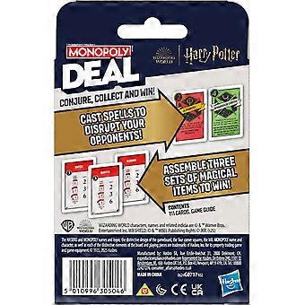Conjure, collect and win in the monopoly deal: Harry Potter children´s card game, a wealth of enchanted objects is waiting to be found. Be the first witch or wizard to collect three different sets of magical items to win. Cast spells over opponents to disrupt their plans – and receive help from iconic heroes and villains while duelling for control over the riches of the wizarding world this fun family card game for children and adults can be played in about 15 minutes, so it´s a great game for fitting in family fun at any time. And Harry Potter toys and games are wonderful festive and birthday presents for teens, adults and children. Wizarding world characters, names and all related indicia are copyright and trademark warner bros. Entertainment inc. WB shield: copyright and trademark WBEI. Publishing rights copyright jkr. (s25) the Hasbro and monopoly names and logos, the distinctive design of the gameboard, the four corner squares, the mr. Monopoly name and character, as well as each of the distinctive elements of the board and playing pieces are trademarks of Hasbro, inc. For its property trading game and game equipment.