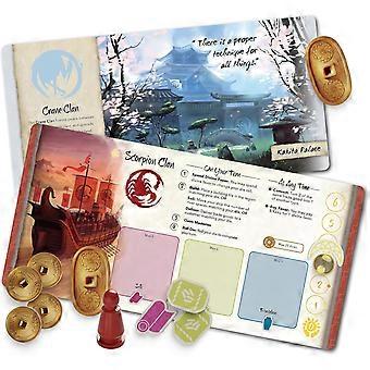 In River of Gold, build your trade empire while fiercely vying for influential status among the nobility of Rokugan. Each turn, your die roll presents three unique opportunities, but you can choose only one. If your die result doesn´t suit your plan, you can leverage the divine favour of the goods to manipulate fate In the included free patrons mini expansion, you´ll recruit a legendary patron of your clan with powerful new abilities.