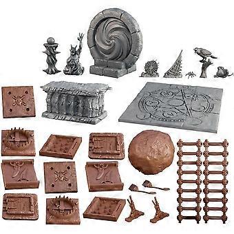 This expansive Fantasy Miniatures: Dark Lord´s Tower set contains items suitable for 5e modules including a magical portal, a summoned demon, cobwebs, a spider, an evil crow, plus loads of traps to deter goody-two-shoes adventurers For those who like to dabble in the dark arts, this set is perfect to fill an evil lair or a cults temple. Immerse your players in awe-inspiring physical layouts for their characters to move around and interact with.