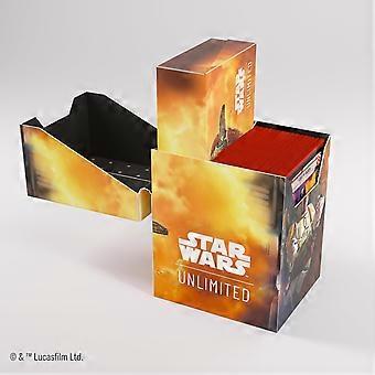 BOBA FETT-THEMED DECK BOX: Showcase your fandom with this officially licensed Star Wars: Unlimited Card Game - Soft Crate featuring the iconic Boba Fett/Fett´s Firespray design. ALL-IN-ONE STORAGE SOLUTION: Holds a complete 60 double-sleeved card deck and includes an innovative token box with a secure locking mechanism for added convenience. DURABLE & USER-FRIENDLY DESIGN: Features Cobra Neck Technology, allowing the lid to open over 180° for easy access, and a strong, self-locking lid to keep your cards secure. PREMIUM MATERIALS & STYLISH ARTWORK: Crafted with unique two-tone materials, vibrant prints, and an acid-free, PVC-free interior for ultimate protection and style. PERFECT FOR STAR WARS FANS: Designed for Star Wars: Unlimited Card Game - players but versatile enough for other card games, trading card games (TCGs), and living card games (LCGs).