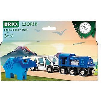 The dinosaur train stands out thanks to its silver and blue finish and a rare blue Triceratops figure. When the hood is open, the engine can be seen inside. After the last fine tuning, the dinosaur can be charged and off you go. The limited edition toy train is only available in 2025 and a great addition to any BRIO track.