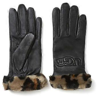 UGG Leather Logo Faux Fur Cuff Unisex Gloves in Black