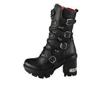 Dominate the streets with these edgy New Rock platform boots. Crafted from premium leather in a striking black hue, they feature a sleek combination of materials including leather linings and insoles for ultimate comfort. The robust rubber sole provides exceptional grip, while the signature zip fastening adds a touch of rebellious style. Reference M-NEOTYRE05-S1 captures the essence of these unisex boots, perfect for making a bold statement wherever you go.