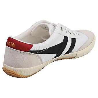 These Gola Badminton Mesh trainers offer a stylish blend of classic design and modern comfort. Crafted with a combination of breathable textile mesh and durable suede, they feature a clean white base accented by bold navy and red detailing. The lace-up fastening allows for a secure fit, while the textile linings, insoles, and rubber soles ensure all-day wearability. Perfect for casual outings or sporting activities, these trainers combine timeless appeal with contemporary performance.