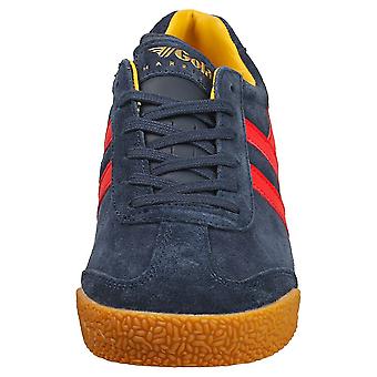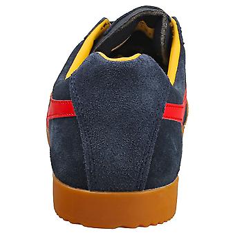The Gola HARRIER in Navy Red is a timeless classic trainer designed for women. Crafted from luxurious suede, these shoes feature a stylish contrast of navy and red hues. The comfortable textile and synthetic lining ensures all-day wearability, while the textile insoles provide cushioning with every step. A durable rubber sole guarantees traction and grip on any surface. Secure your perfect fit with the classic lace-up fastening.