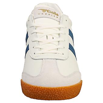 Classic style meets modern comfort with these Gola Harrier trainers in a timeless white and blue colour combination. Crafted from premium leather uppers, they feature textile and synthetic linings for a breathable and cushioned fit. Durable rubber soles provide reliable traction, while the lace-up fastening ensures a secure and adjustable wear. Reference CMB426WE. Perfect for everyday wear, these trainers effortlessly elevate any casual outfit.
