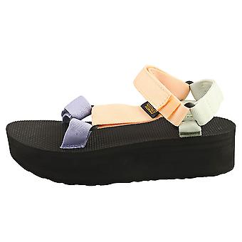 Embrace summer comfort and style with these vibrant Teva Flatform Universal sandals. The Sherbert Multi colorway boasts a playful combination of hues, perfect for adding a pop to your outfits. Crafted with a durable textile upper, soft textile linings, and supportive synthetic insoles, these sandals provide all-day wearability. The grippy rubber outsole ensures traction on various surfaces, while the secure strap fastening keeps your feet comfortably in place. Reference 1008844-SRMLT for easy identification. Step into summer confidence with Teva´s iconic blend of comfort and fashion.