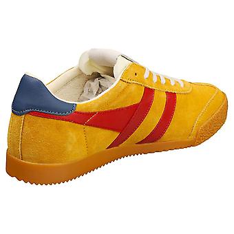 Step up your style game with these Gola ELAN trainers in a vibrant Sun Red. Crafted from premium suede, these fashion sneakers feature a stylish combination of Sun Red suede and contrasting textile lining for a modern look. The breathable textile insoles ensure all-day comfort, while the durable rubber soles provide reliable traction on any surface. Lace-up fastening allows for a secure and personalized fit. Perfect for adding a pop of colour to your everyday wardrobe.