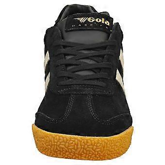 Step out in timeless style with these Gola Harrier Mirror trainers. Crafted from luxurious black suede and accented with gleaming gold details, these classic trainers offer a sophisticated touch to any outfit. The combination of textile & synthetic linings ensures ultimate comfort, while the durable rubber sole provides reliable traction. Lace-up fastening allows for a secure and adjustable fit. These chic black gold HARRIER MIRROR trainers (CLA156XB) are perfect for women who appreciate both fashion and function.