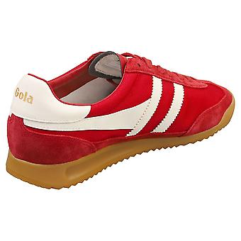 Step up your sneaker game with these classic Gola Tornado trainers. Featuring a bold red and off-white colour combination, this stylish blend of textile and suede upper exudes modern streetwear vibes. Breathable textile linings and insoles ensure all-day comfort, while durable rubber soles provide reliable traction. Secure lace-up fastening lets you customize the fit for optimal performance and style. Elevate your everyday look with these timeless Gola trainers.