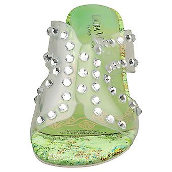 Embrace summer in style with these Laura Vita FRAMBOISEO wedge sandals. Crafted from a beautiful green synthetic material, these slip-on sandals feature a chic combination of colours and textures for a contemporary look. The leather insoles provide exceptional comfort, while the durable rubber soles ensure stability on any terrain. Perfect for both casual outings and dressier occasions, these SL8044B-23 wedges elevate your wardrobe with their timeless elegance.