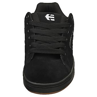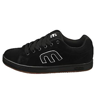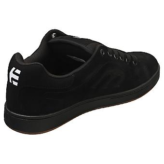 These Etnies Callicut skate trainers are a classic combination of style and performance. Crafted from durable suede with contrasting white textile accents, these black and white shoes offer a timeless look that´s perfect for both on and off the board. A comfortable textile lining and insole ensure all-day wearability, while the grippy rubber sole provides superior traction for your skateboarding adventures. Secure the fit with the classic lace-up closure system and elevate your skate style with these Etnies essentials.