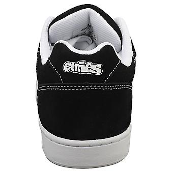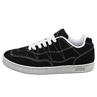 Etnies SNAKE skate trainers in a classic black and white colour combination. Crafted from a durable combination of suede and synthetic materials for long-lasting performance. Breathable textile linings and insoles keep your feet comfortable, while the grippy rubber outsole provides excellent board feel and traction. Lace-up fastening ensures a secure fit. References: 4101000581-976