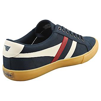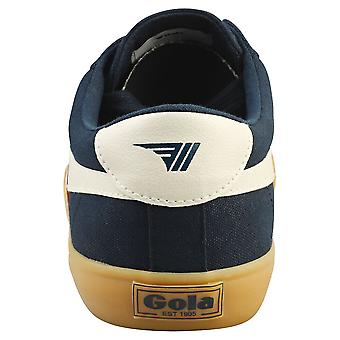 Embrace timeless style with these Gola Varsity Vegan trainers. This navy red white colourway offers a classic combination that effortlessly elevates your casual look. Crafted with a breathable textile upper and lining for ultimate comfort, these vegan trainers feature durable rubber soles for long-lasting wear. Secure the perfect fit with the lace-up fastening system and showcase your individual style with the iconic Gola branding. Reference CMA331EL for this must-have addition to your footwear collection.