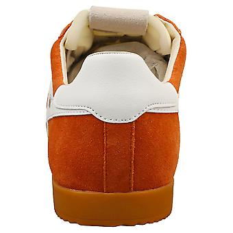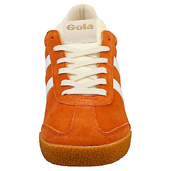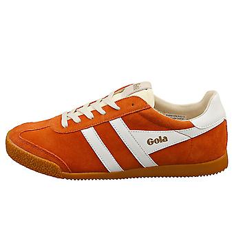 Step up your style game with these classic Gola ELAN trainers in a bold Orange White colour combination. Crafted from premium suede and featuring textile linings, insoles and laces for a comfortable and breathable fit. A durable rubber sole provides lasting traction, perfect for everyday wear. These iconic lace-up trainers are a must-have addition to any man´s wardrobe. Reference CMB538UX for easy identification.